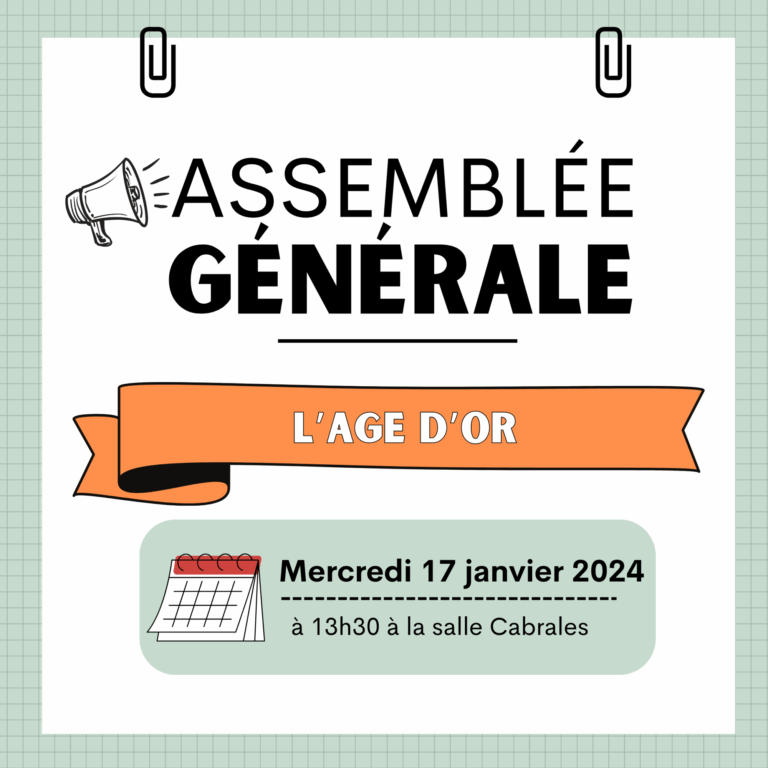 Assemblée générale de l’Age d’Or le mercredi 17 janvier 2024 à 13h30 à la salle Cabrales.